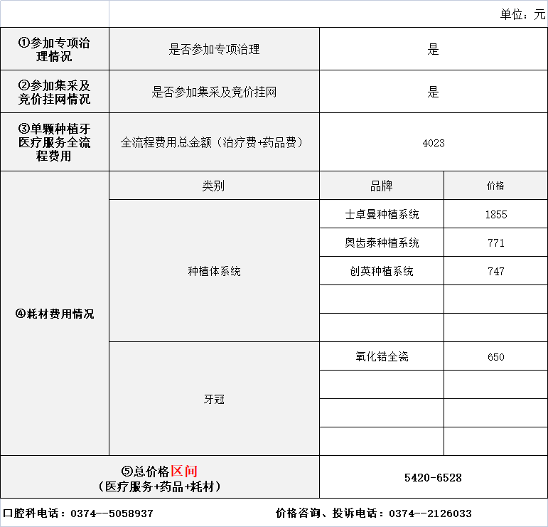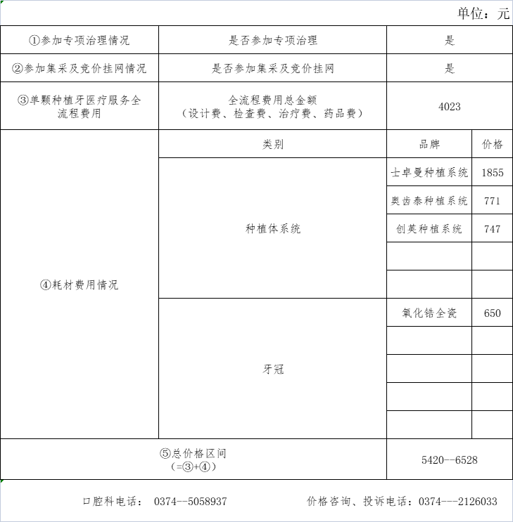 許昌中醫(yī)院口腔單顆牙價(jià)格信息公示